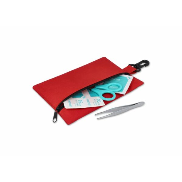 Deze EHBO set wordt geleverd in een handige 300D polyester etui met karabijnhaak en voldoet aan Europese normen. Ideaal voor reizen, outdoor-activiteiten of in de auto of rugzak voor kleine noodgevallen. Inhoud: 2 × non-adherente pads 5 × 7.5 cm, 1 × schaar, 1 × pack van 5 non-woven sponzen 2" × 2" 4-laags, 1 × medische tape 1.25 cm × 4.5 m, 2 × alcoholpads, 5 × pleisters 72 × 19 mm, 1 × elastisch crepeverband 5 × 450 cm, 1 × pincet.